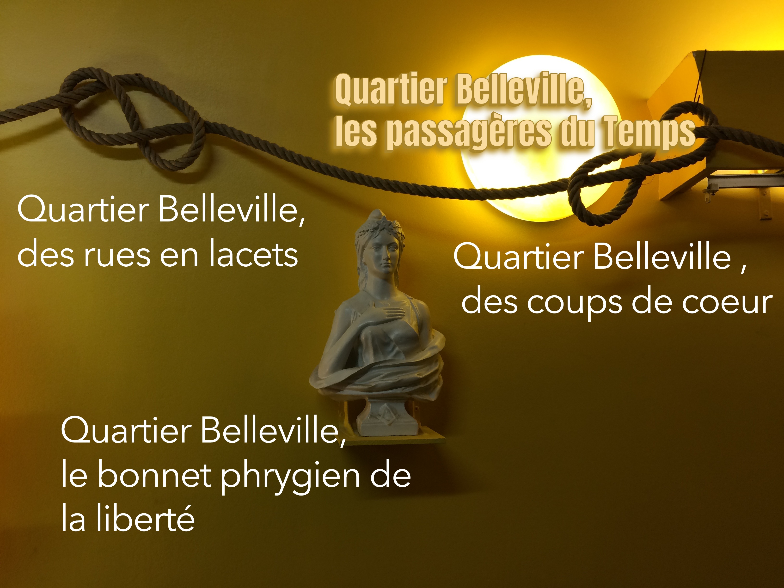 : « Que faire? », l’infinie question…. Belleville qui faisait son cinéma, usines à caméras de jadis, Monsieur Gaumont enterré pas loin….et aujourd’hui, Belleville qui affiche à la fois joliment et durement les origines de tous les peuples d’Afrique et d’Orient, immigrés ou natifs, mélangés dans la rudesse de l’existence, de l’invisible, pour eux aussi. Mélangés dans le poids sur les épaules.